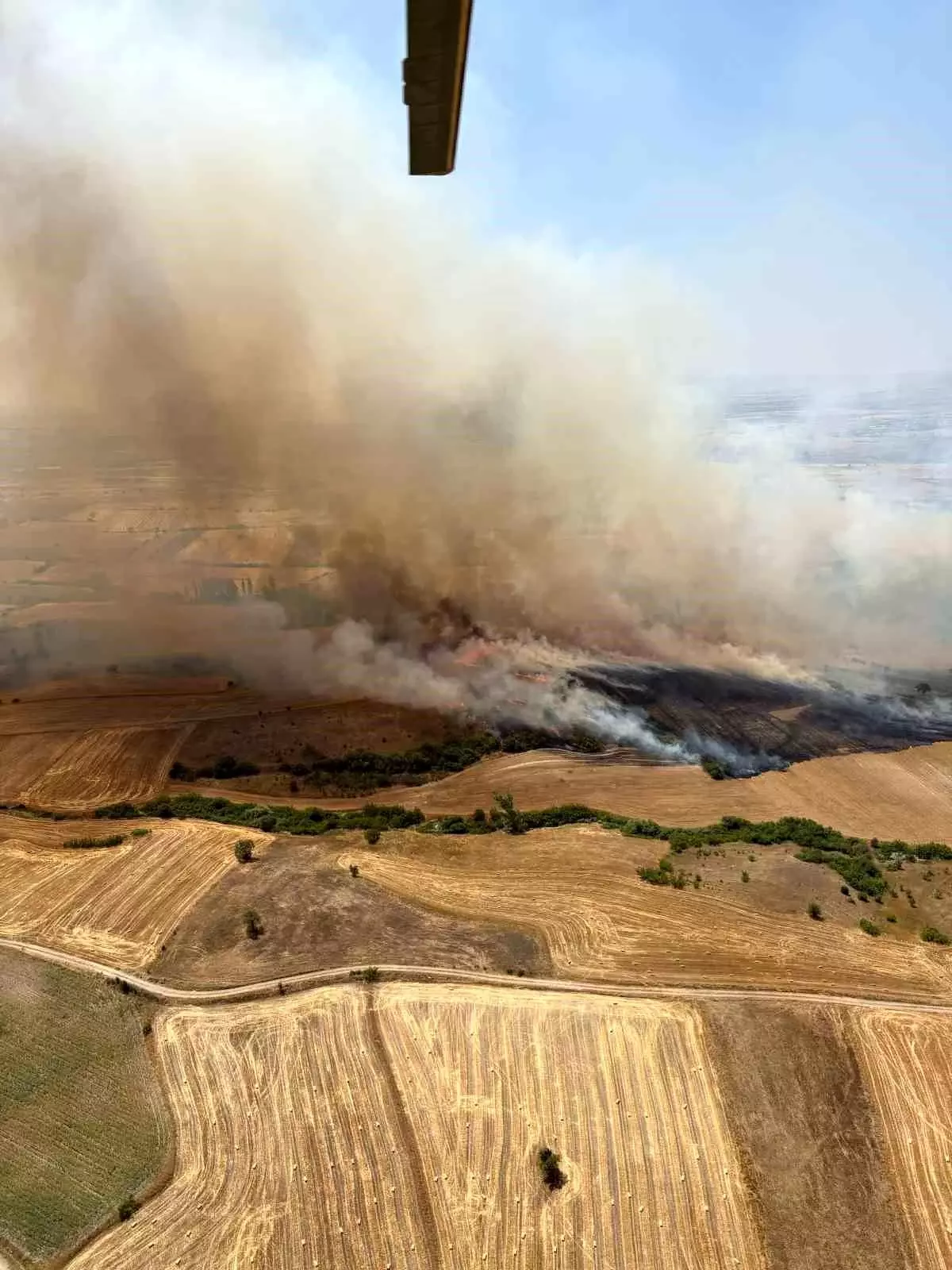 Kepsut İlçesi Nusret Mahallesinde tarım toprağında çıkan yangına gruplar, yerden ve havadan faal bir müdahale ile takviye vermektedir. Yangın çıkan tarım alanında bulunan mesken ve dam gibisi alanına yangının sirayet etmemesi için takımlar helikopter ile söndürme çalışmalarına devam ediyor. – BALIKESİR