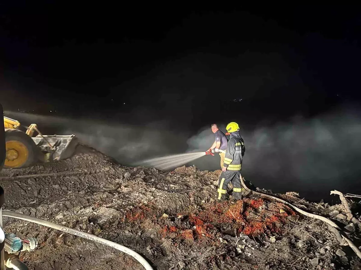 Balıkesir’in İvrindi ilçesinde çöplerin depolandığı çöplük alanında çıkan yangın itfaiye takımlarınca söndürüldü. Çöplük alanından çıkan duman hafriyat dökülerek bertaraf edilecek.