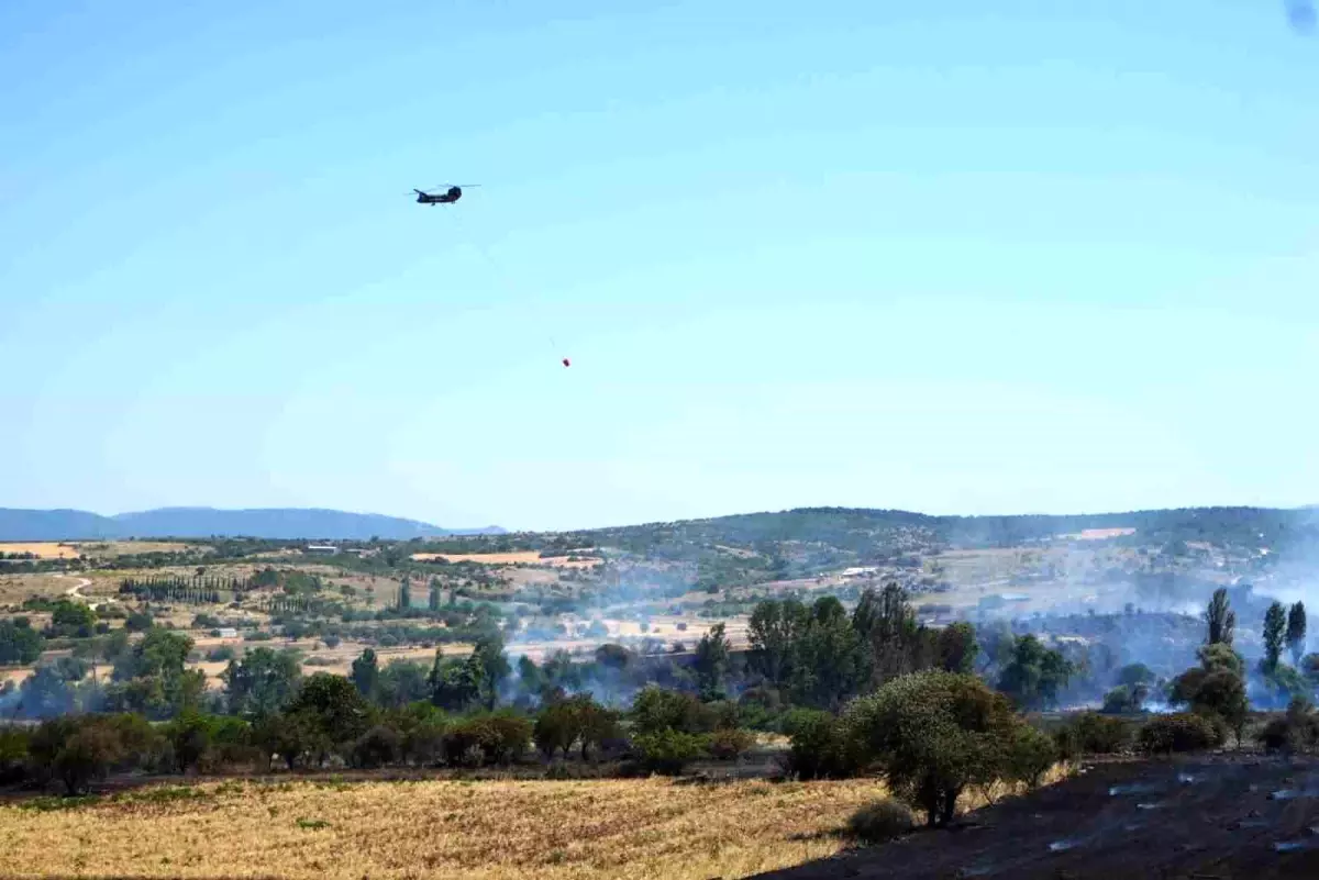 Balıkesir’in Pamukçu Mahallesi’nde tarım yerinde çıkan yangın havadan ve karadan müdahale ile söndürüldü. Toprakta soğutma çalışmaları devam ediyor.