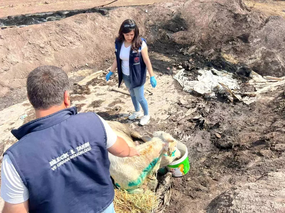 Sakarya’nın Taraklı ilçesinde başlayan orman yangını, rüzgarın tesiriyle Bilecik’in Gölpazarı ve Osmaneli ilçesine bağlı birçok köyü tesiri altına almıştı. 3 gündür havadan ve karadan binlerce kişinin canla başla çalışarak denetim altına almaya çalıştığı alevler, dün sabah yağan yağmurun tesiriyle kısmen denetim altına alındı. Bugün de soğutma süreçlerinin devam ettiği bölgede bir çok hayvan telef oldu. Osmaneli ilçesine bağlı Soğucakpınar köyünün Kaşıkçı Mahallesinde 32 haneden faal kullanılan 20 konutun 15’i büsbütün yanarak harabeye döndü. Burada 6 büyükbaş, 36 küçükbaş hayvan telef olurken, hayvanlar Bilecik Vilayet Tarım ve Orman Müdürlüğüne bağlı takımlarca denetimli bir biçimde iş makinesi yardımı ile kaldırıldı. Yangından etkilenmeyerek hayatta kalan hayvanlara ise Bilecik Vilayet Tarım ve Orman Müdürlüğüne bağlı veterinerler sıhhat denetimli yapmak üzere bölgeye gitti. Veterinerler hayatta kalan birçok hayvanı muayene ederken, gerekli gördüklerine ilaç desteği yaptılar. – BİLECİK