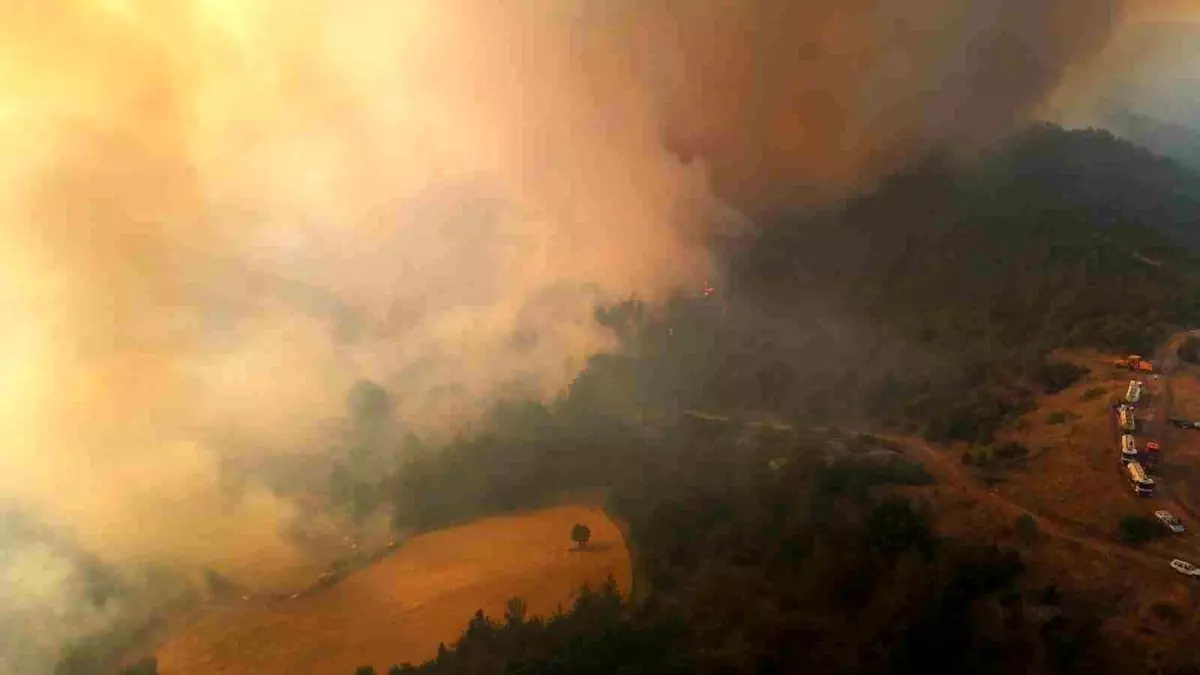 İlçenin Çiftlik köyü yakınlarında bulunan ormanlık alanda ağır müdahale çalışmaları sürüyor. Havadan ve karadan uğraş eden gruplar, köylülerin de iş birliği ile geniş alandaki yangını denetim altına almaya çalışıyor. Yangının köye inmemesi için takımlar çalışmalarını sürdürürken, tıpkı bölgede farklı alanlardaki öteki yangınlara da müdahaleler devam ediyor.