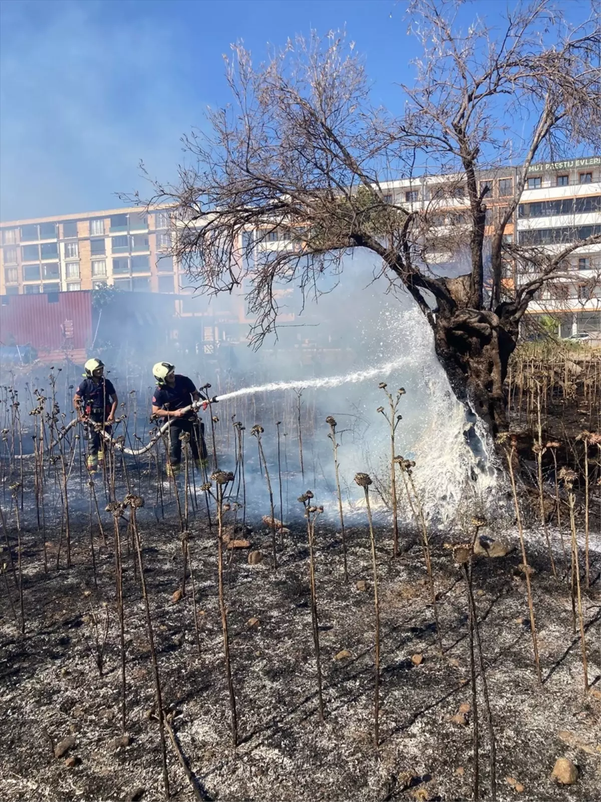 Otluk alanın yakınındaki zeytinlik alana sıçrayan yangına Burhaniye İtfaiye Küme Amirliği bünyesindeki gruplar müdahale etti.