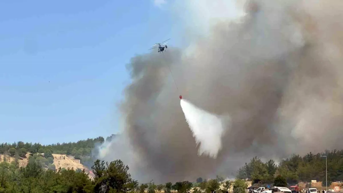 Çanakkale’de çıkan orman yangınını denetim altına almak için Orman Bölge Müdürlüğü grupları havadan ve karadan müdahale ederken, Çanakkale Boğazı trafiğe tek istikametli kapatıldı.