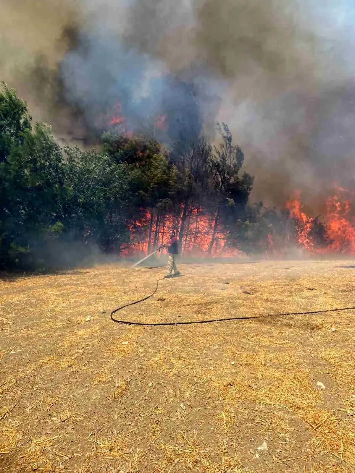 Çanakkale’de çıkan orman yangınını denetim altına almak için Orman Bölge Müdürlüğü grupları havadan ve karadan müdahale ediyor.