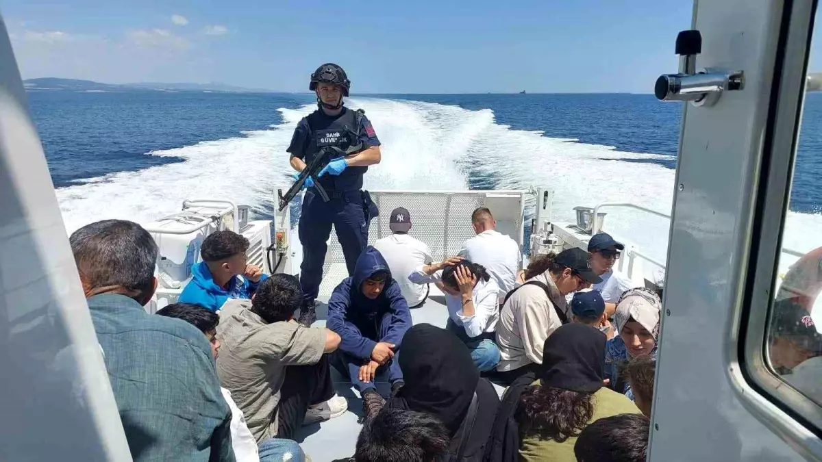 Gelibolu açıklarında yelkenli tekne içerisinde bir küme kaçak göçmen olduğu bilgisi üzerine Kıyı Güvenlik Komutanlığı ile İl Emniyet Müdürlüğü grupları harekete geçti. Bölgeye sevk edilen Kıyı Güvenlik Botları ‘KB-24’ ve ‘KB-62’ ile Çanakkale İl Emniyet Müdürlüğü takımları tarafından rotası İtalya olan hareket halindeki yelkenli tekne içerisinde 14’ü çocuk toplam 51 kaçak göçmen ile 2 göçmen kaçakçısı şüphelisinin yakalanma anı ortaya çıktı. Manzaralarda yakalanan göçmen kaçakçısı 2 kuşkulu ile tekne içindeki 51 kaçak göçmen görüntülendi. – ÇANAKKALE