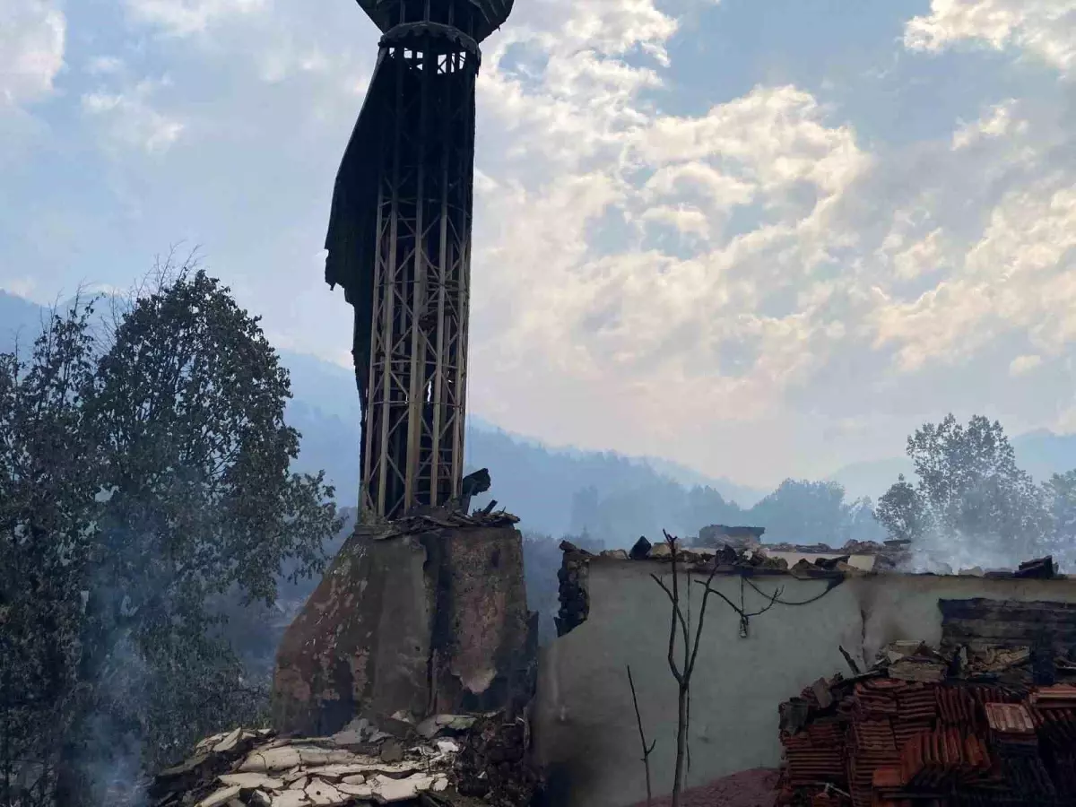 Gölpazarı’na bağlı Köprücek köyünün yüzde 90’ı büsbütün kül olurken, köy mescidinin de için için yandığı görüldü. Köydeki 23 meskenden yalnızca 3’ü ayakta kalırken, 20 mesken büsbütün kül oldu. – BİLECİK