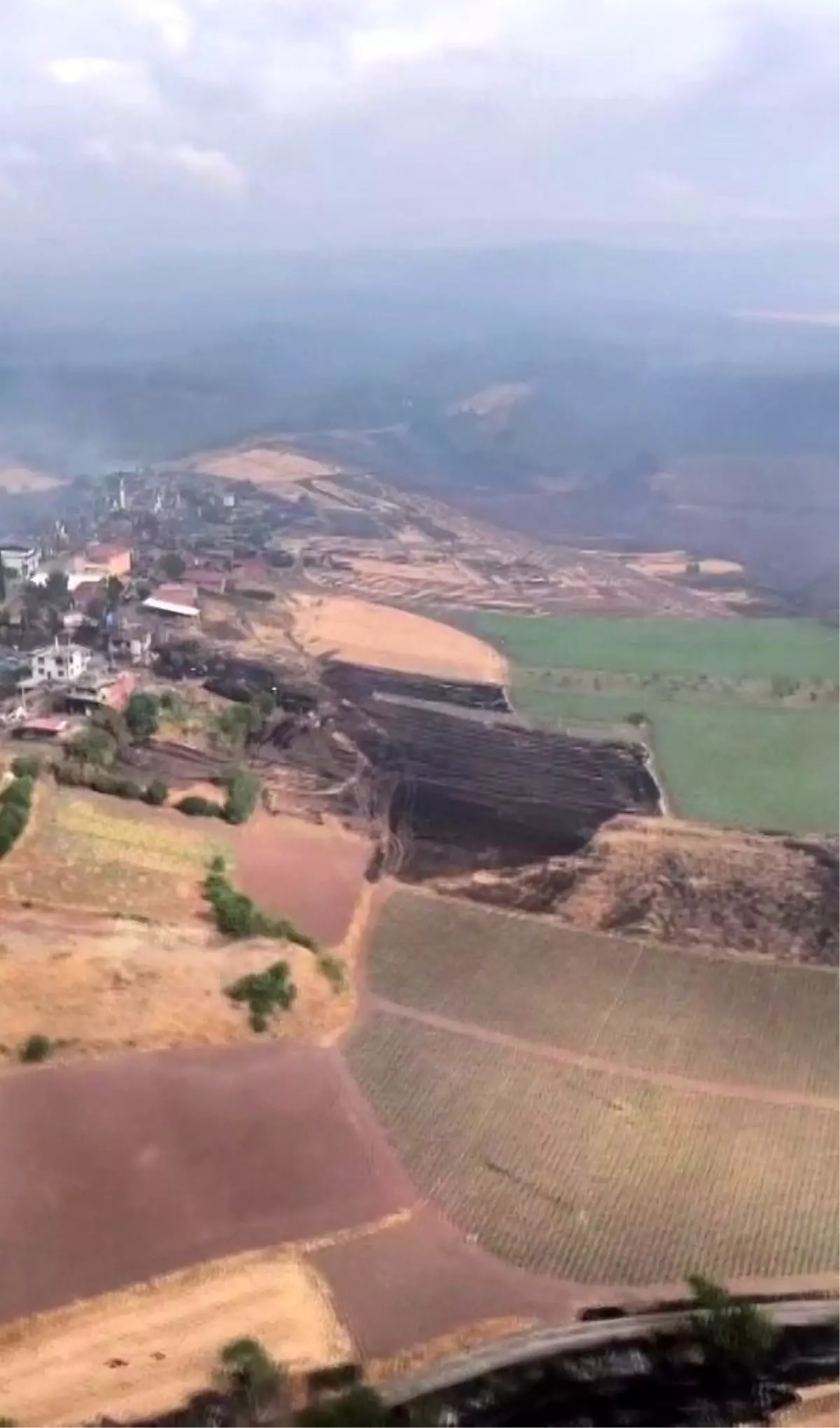 Sakarya’nın Taraklı ilçesinde başlayan orman yangını, rüzgarın tesiriyle Bilecik’in Gölpazarı ilçesine bağlı 9 köyü tesiri altına almıştı. 3 gündür havadan ve karadan binlerce kişinin canla başla çalışarak denetim altına almaya çalıştığı alevler, bu sabah yağan yağmurun tesiriyle kısmen denetim altına alındı. Bölgede alevler yerini dumanlara bırakırken, 150’e yakın arazöz yerden soğutma süreci yapıyor. 35 kilometrelik bir alanda büyük tahribat oluşurken, yangının bıraktığı tahribat havadan bu türlü görüntülendi. – BİLECİK