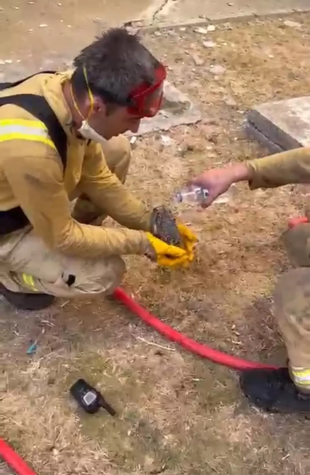 Çanakkale’nin merkeze bağlı Sarıcaeli köyünde çıkan yangına havadan ve karadan müdahale sürdürülüyor. Öte yandan orman personelleri, yangından alevlerin ortasından kurtarılan bir kirpiye su içirdi.